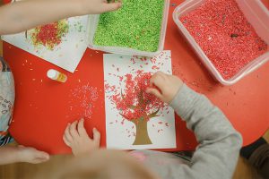 短冊にお願いごとをかき、折り紙でいろいろな飾りをつくったら、飾り付け!